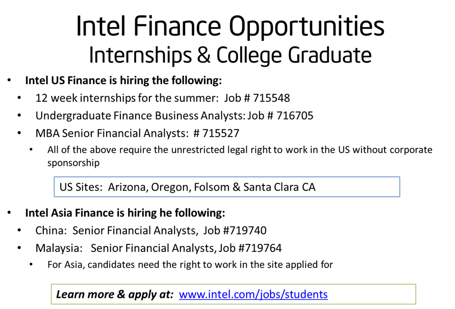 Amazing opportunities with Intel! ImageOctober 29, 2013October 29, 2013ucsbecon Below are several non-tech opportunities (internship and full-time) at Intel. Any student interested in Intel should join the “Intel Student Lounge” on LinkedIn and chat with actual recruiters. Share this: Click to share on Facebook (Opens in new window) Facebook Like Loading... Related