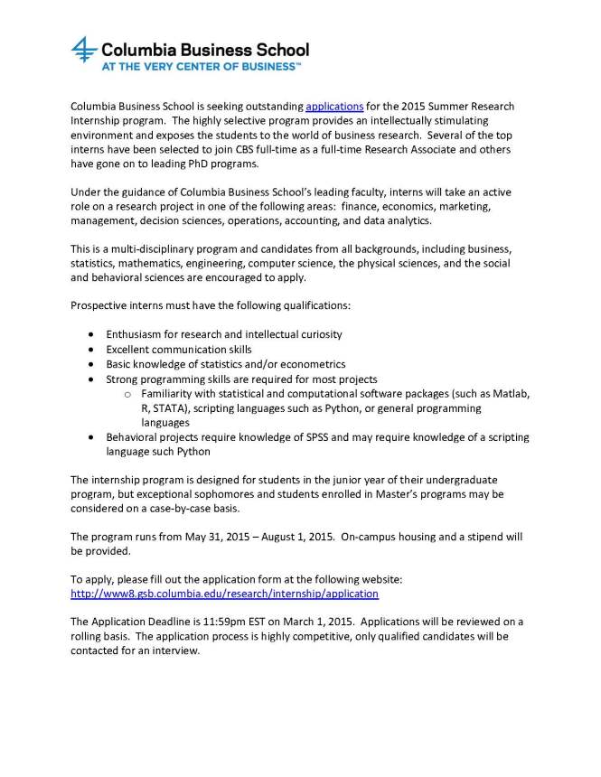 Columbia Business School – Summer Internship January 21, 2015ucsbecon Share this: Share on Facebook (Opens in new window) Facebook Like Loading... Related