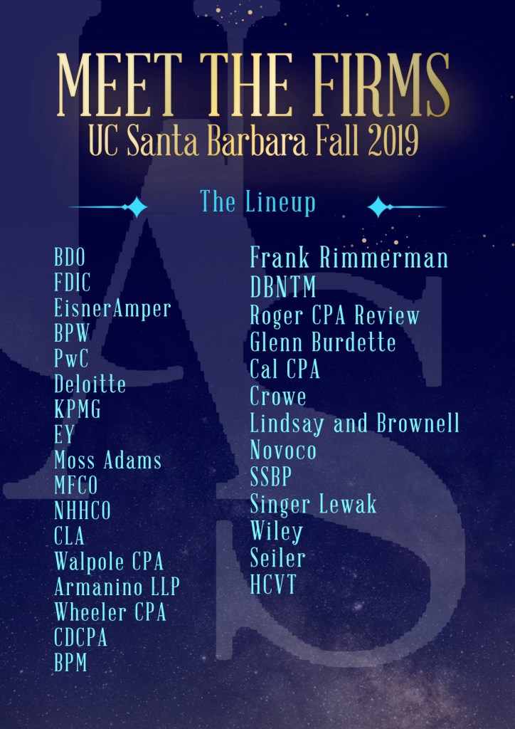 Meet The Firms Lineup September 30, 2019ucsbecon To sign-up or learn more please visit http://www.ucsbaccounting.com/ Share this: Click to share on Facebook (Opens in new window) Facebook Like Loading... Related