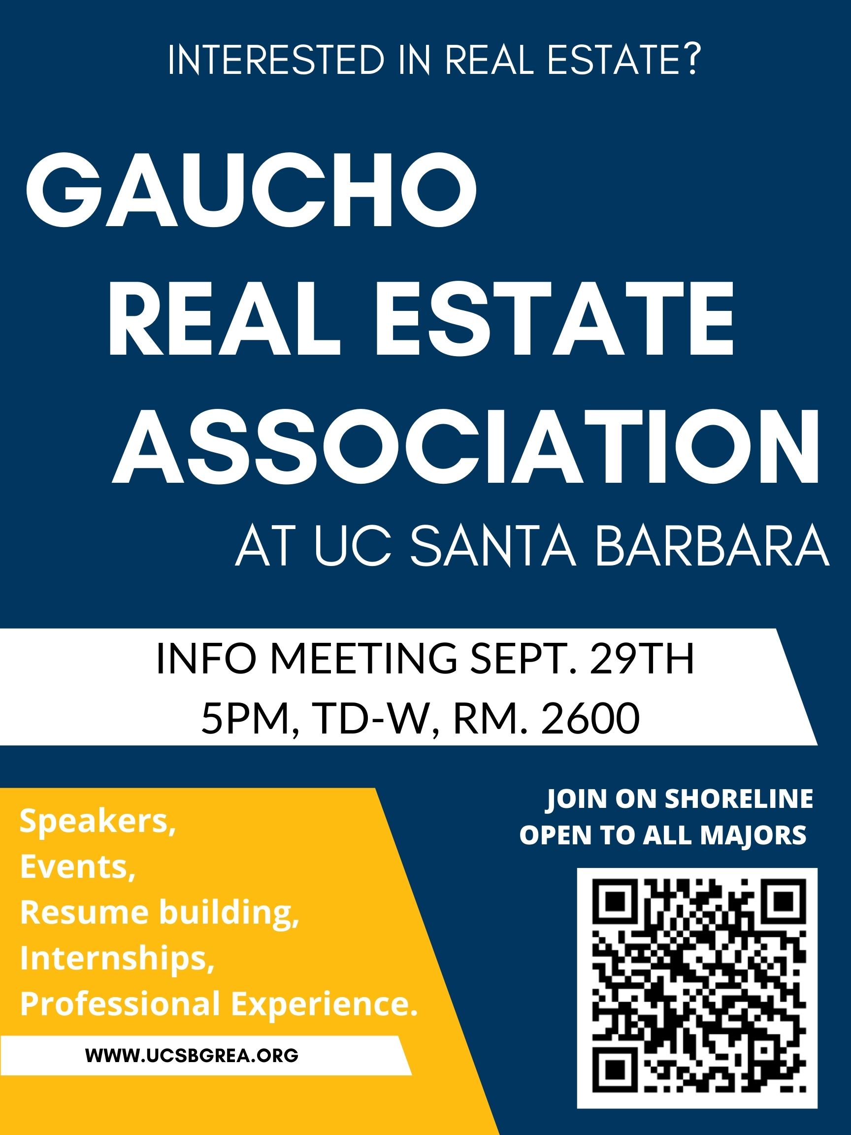 Gaucho Real Estate Association!! September 29, 2022September 29, 2022ucsbecon Don’t miss the first meeting grea-flyer-info-meetingDownload Share this: Click to share on Facebook (Opens in new window) Facebook Like Loading... Related